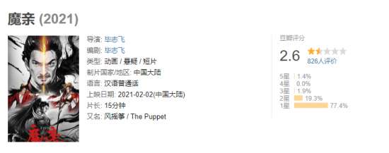 上映仅一天,《魔亲》在豆瓣的评分成功超越前作,上升至2.6分。