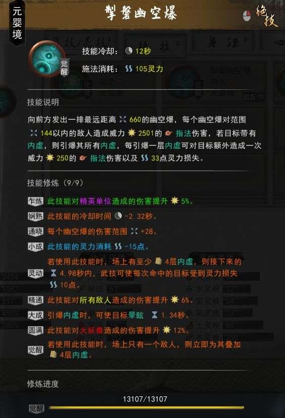 可能有很多小伙伴选了徒手专精,发现大招没伤害,其实是因为只叠了内虚,没有引爆变成灵虚层数。