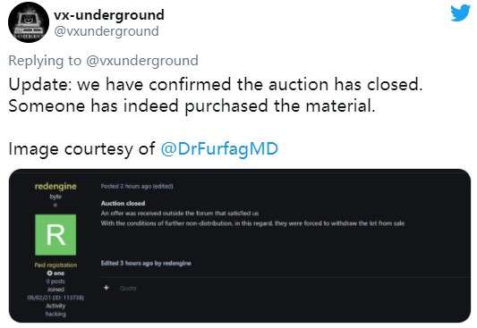 购买者的身份和出价并未公开。Kela在此前的报道中表示数据的起拍价格为100万美元,即刻购买价格(buy-it-now price)为700万美元。该消息曾被vx-underground验证。