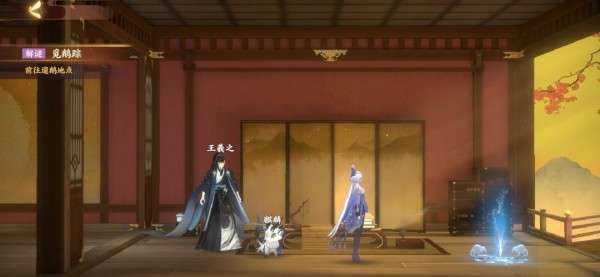 8.获得四种颜料后,先回到曹植的桌子前,会有对应的三个小碟存放三种颜料,存放完毕后,每次蘸取一种颜料,去到中间和右边的屏风,进行上色。