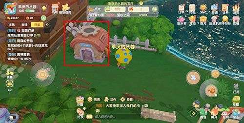 就是需要玩家来到自己家池塘左边的这个小房子这里,然后进行修复,需要提交一些材料。