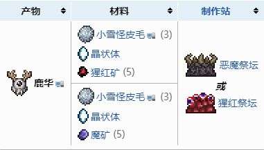 我们可以制作鹿华(Deer Thing),并在夜晚的雪地中使用来召唤鹿角怪。鹿华制作配方如下: