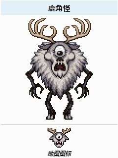 鹿角怪是“以眼还眼”联动中,由饥荒世界来到泰拉瑞亚的访客。在泰拉瑞亚中,它同样是一位可以在早期召唤并挑战的Boss。