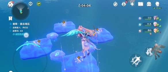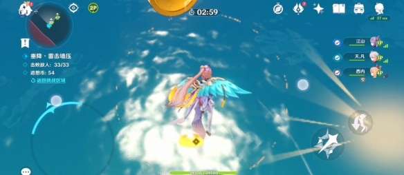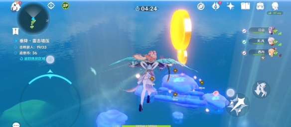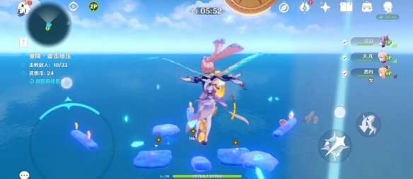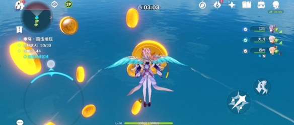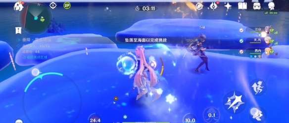 击败后将坠入海面以完成挑战,这边建议看看右侧的追想币有没有到达60个,如果没有先去吃底下的追想币,不要用下落攻击吃!,一条线的数量可能不够我们到60的(大概是11个)