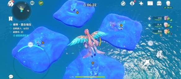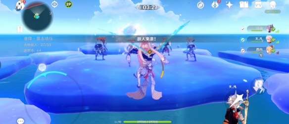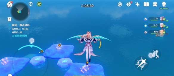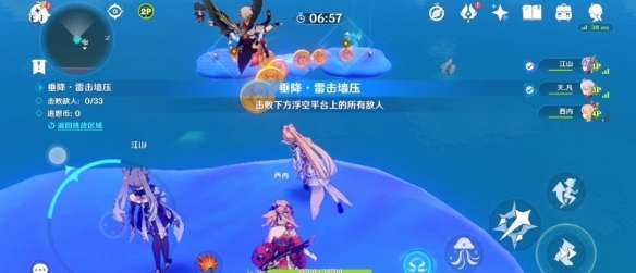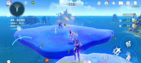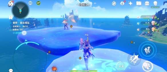 收集完之后我们将抵达两个平台上,每个平台有三个丘丘人,一边派两个玩家以更快消灭它们
