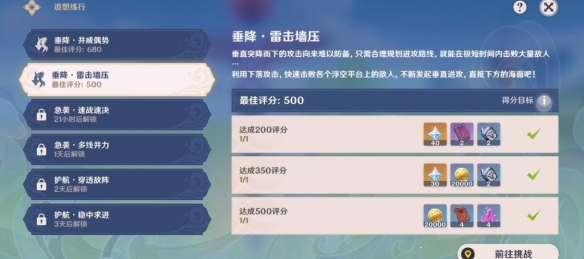 完成挑战后根据评分来获得相应奖励