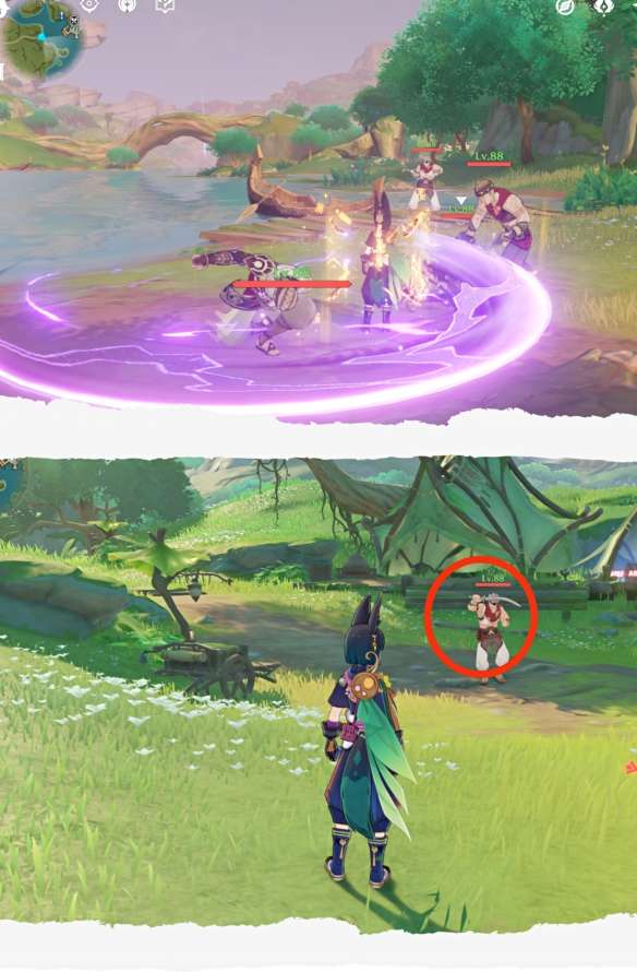 然后等他匕首左右交换时,用弓箭角色射击他即可(建议可以先把其他怪消灭掉,只留下他一个,不然角色容易被攻击)