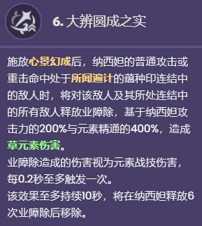 该效果至多持续10秒,将在纳西妲释放6次业障除后移除。