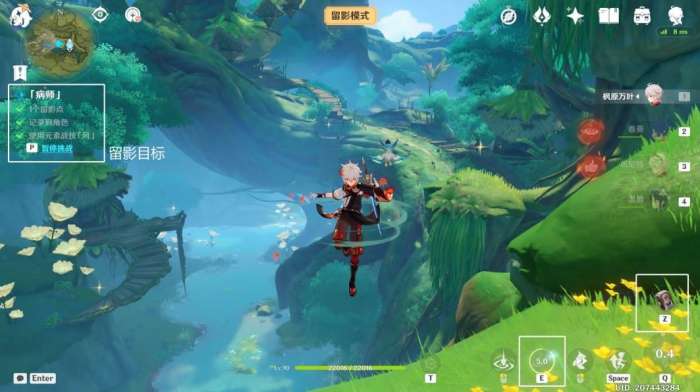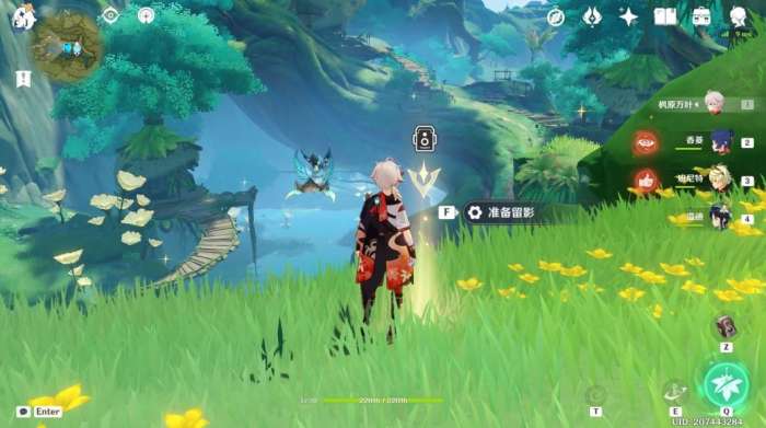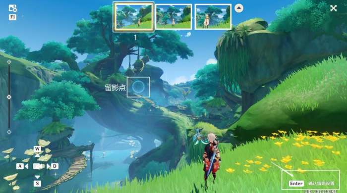 3、装备小道具「留影机」,使用风元素角色,准备留影