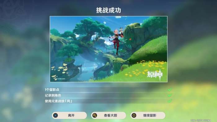 5、风元素角色使用元素战技,达到留影目标,使用小道具「留影机」