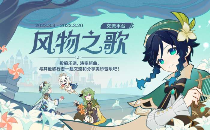 同时,「风物之歌」交流平台限时开启,旅行者们可以在平台内自定义编辑和分享属于你的游戏内编曲信息、查看其他旅行者制作的曲谱,以及上传你的演奏挑战!