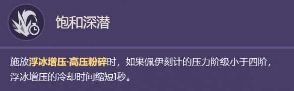 施放浮冰增压·高压粉碎时,如果佩伊刻计的压力阶级小于四阶,浮冰增压的冷却时间缩短1秒。