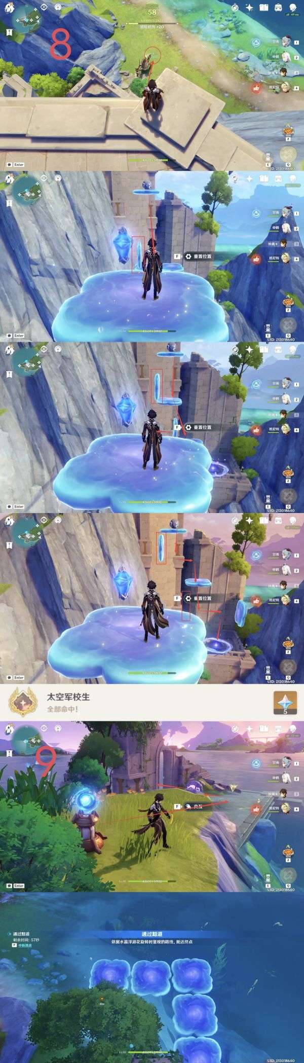 8.珍贵宝箱,势能球三次挑战,攻击晶体会使其中平台消失或者出现,重置位置是将势能球归位:①.等下方墙体到达最左边攻击晶体即可;②.中间墙体在最左边并且底部墙体往左边移动,攻击晶体即可;③.第二层墙体在最左边时攻击晶体,势能球掉下去后等它推动到第三层时攻击晶体,第四层墙体在最左边时攻击晶体,然后势能球被推动到指定位置时攻击晶体即可。完成获得宝箱和成就「太空军校生」。