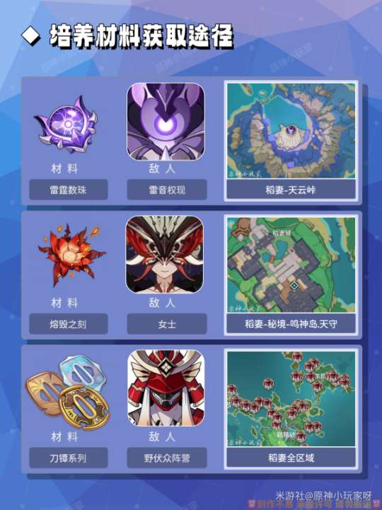 5️⃣培养材料采集路线(详见图⑤-图⑥)
