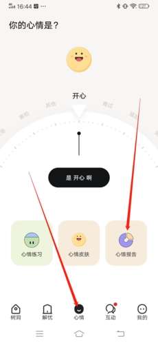 1、进入APP后,首先点击下方“心情”,再点击进入“心情报告”;