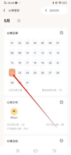 2、点击心情记录中想要删除心情的那天;