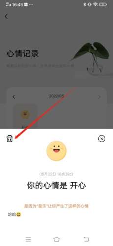 4、再点击该心情左上侧的“垃圾桶”按钮;