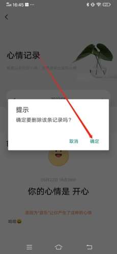 5、最后在弹出窗口中选择“确定”,即可成功删除该心情。