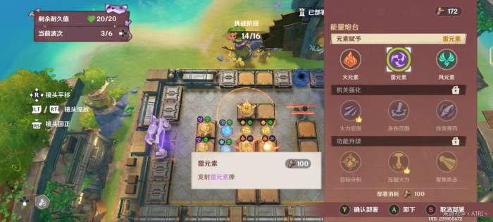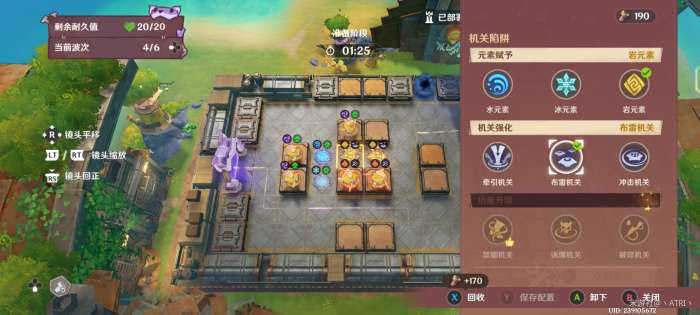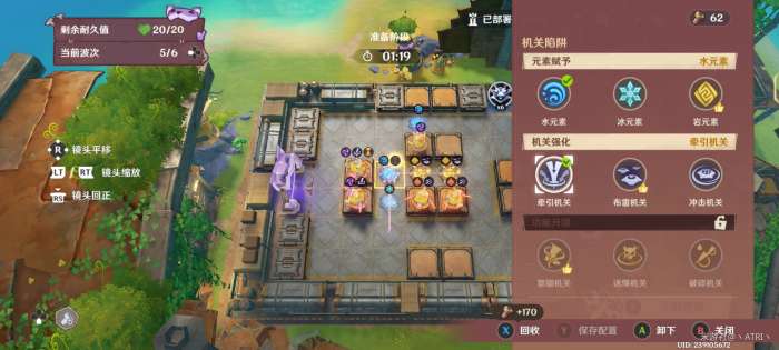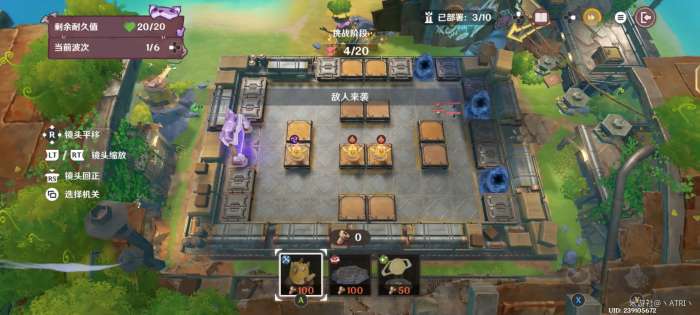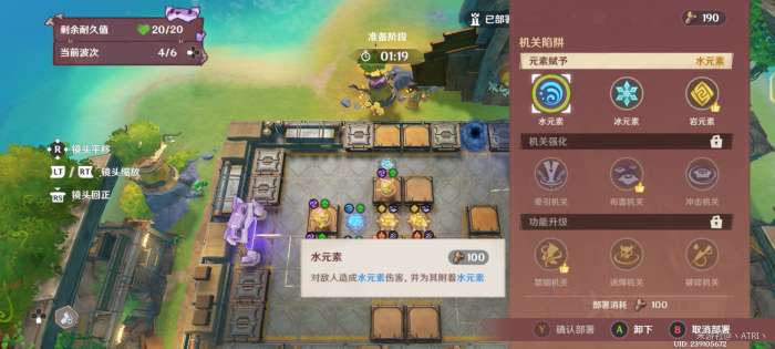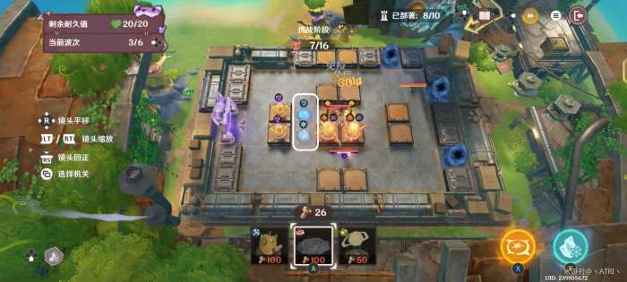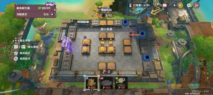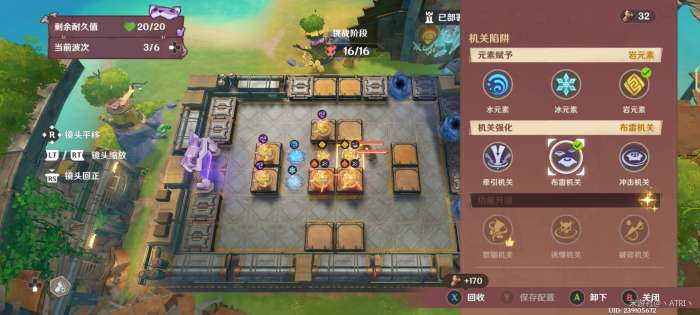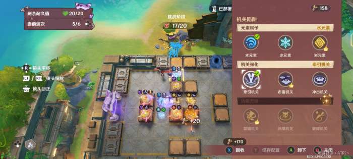 在迎敌期间,资源足够时,对框中位置部署冰元素陷阱