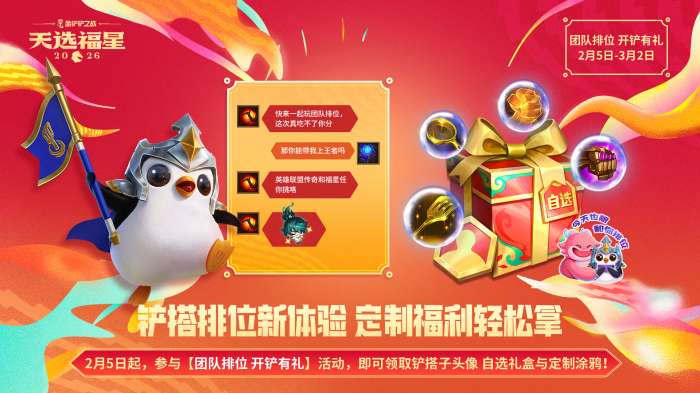 参与【团队排位 开铲有礼】活动即可领取铲搭子头像,自选礼盒和定制涂鸦!