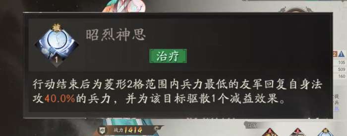 目前就有两种玩法法,第1种是治疗流派,第2种是辅助流派,治疗流派中可以多多使用恢复技能,把整个阵线进行稳固,给队友争取更多的进攻时间。辅助流派时可以优先对它的增益效果进行使用,在战术的使用上也需要逐步推进。如果玩家非常注重治疗能力的话小编比较推荐使用两个治疗技能加一个辅助技能,教民顺孝,良助,昭烈神思,都是非常厉害的治疗技能,昭烈神思是甘美的核心被动技能,可以优先配合使用。