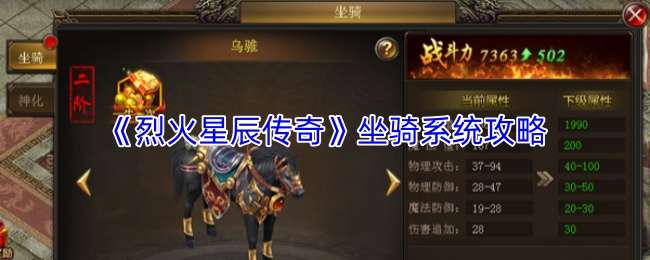 以上就是小编带来的《烈火星辰传奇》坐骑系统攻略,更多相关攻略,请关注pk游戏网。