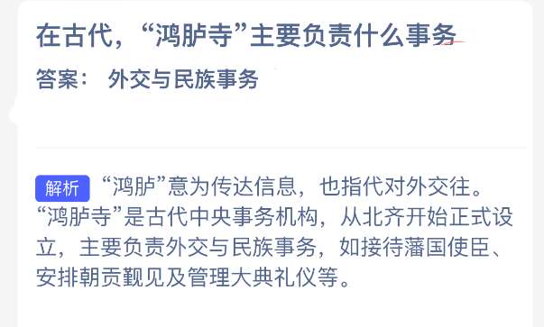 以上就是在古代,“鸿胪寺”主要负责什么事务?支付宝蚂蚁新村最新答案2026年1月23日,更多精彩内容,请点击关注pk游戏网更新!