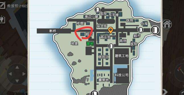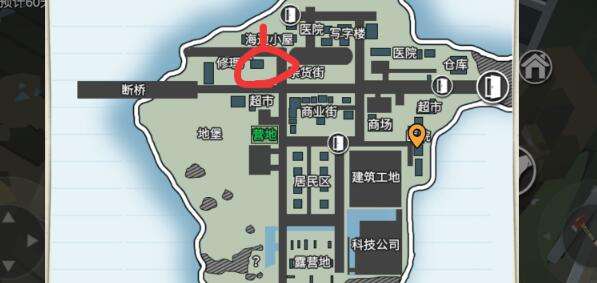 在“海边小屋”的这个地方,中间被隔断了,属于另一类房区,刷新写字楼类的物资,同时红圈地方一样;