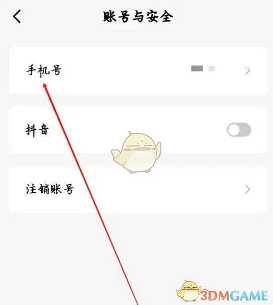 4、在账号与安全页面中,点击 “手机号” 选项进行设置即可。