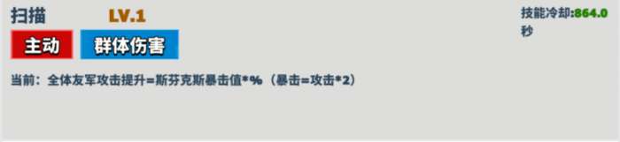 描述: 全体友军攻击提升=斯芬克斯暴击值*%(暴击=攻击*2)。