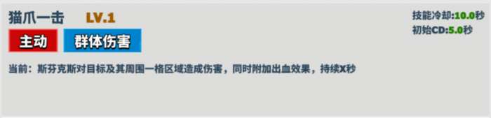 描述: 斯芬克斯对目标及其周围一格区域造成伤害,同时施加出血效果,持续X秒。