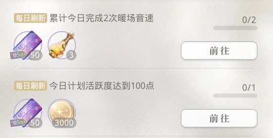 每日通关2次【暖场音速】小游戏,完成100活跃度
