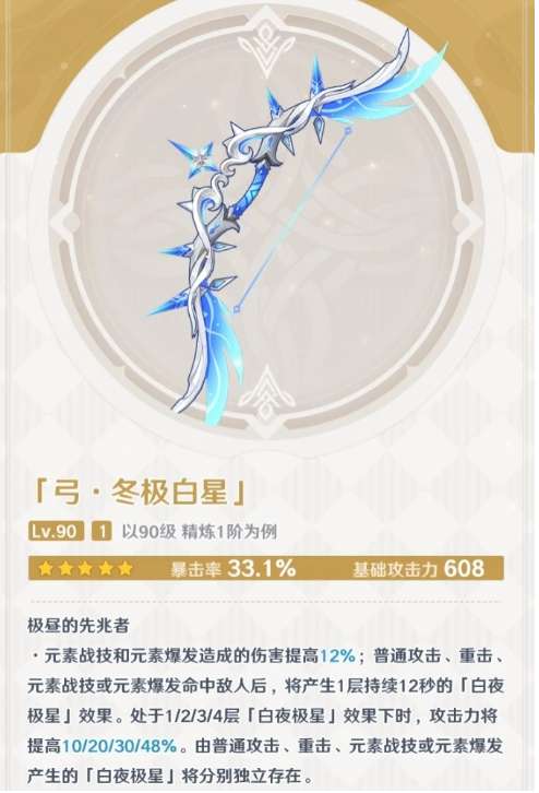 7、冬极白星满级(90级)面板属性:攻击力608、暴击率33.1%