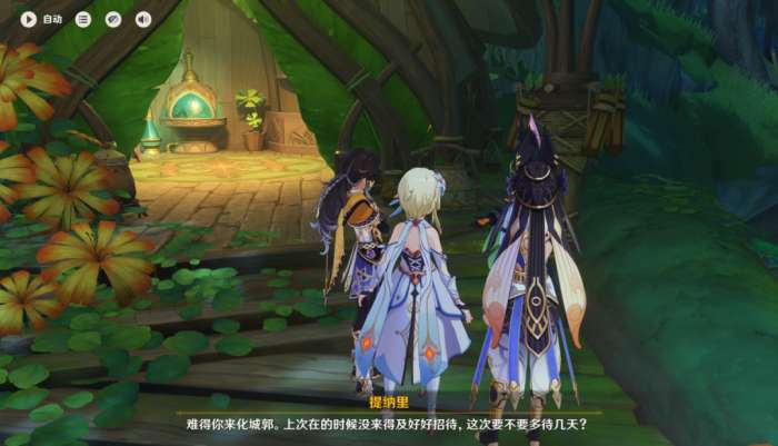 净善宫门口的传送点旁可以找到草神妮露和莱伊拉