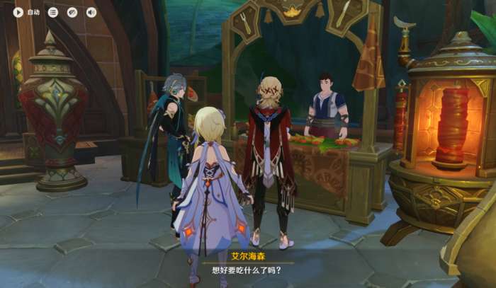 任务结束后在须弥城冒险家协会下边的小吃摊可以找到海森和卡维