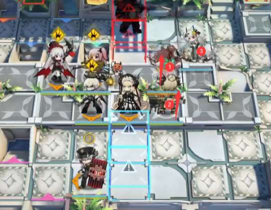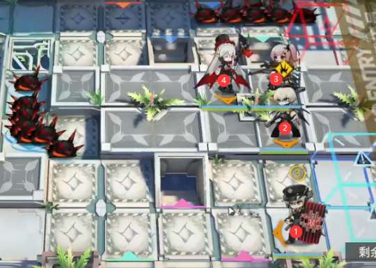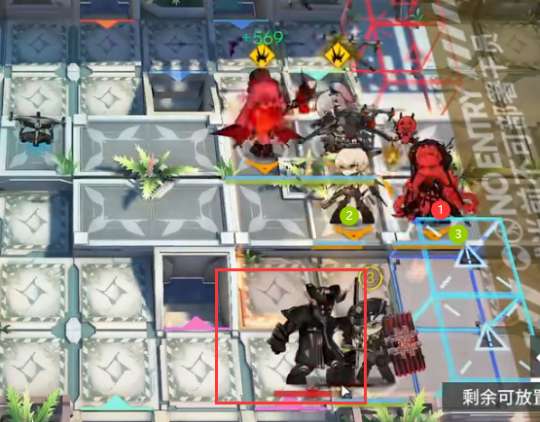 3阶段,等到华法琳冷却结束,如图所示位置部署华法琳和能天使,直接在过载时开华法琳技能秒掉BOSS。