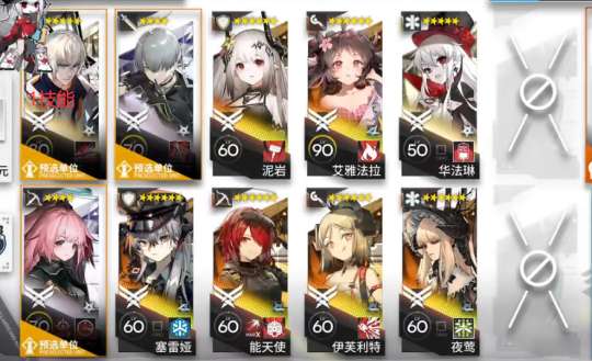 携带干员:塞雷亚、泥岩、能天使、艾雅法拉、伊芙利特、华法林、夜莺
