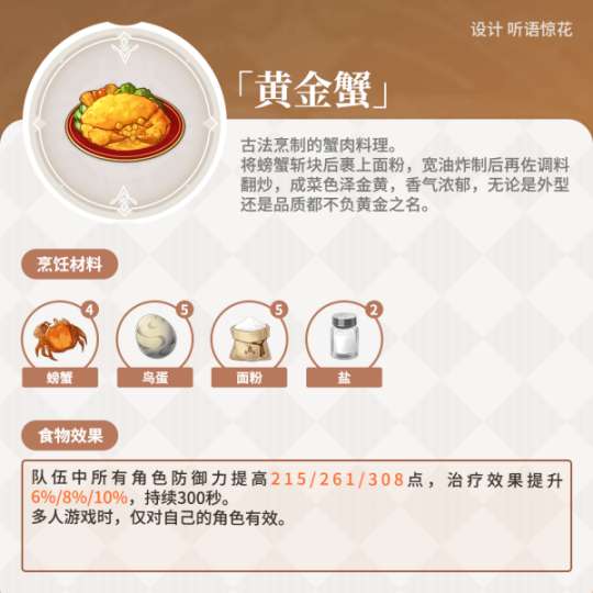 2 吃防御类食品【黄油蟹蟹或者黄金蟹,不要和散兵的料理同吃会顶掉】