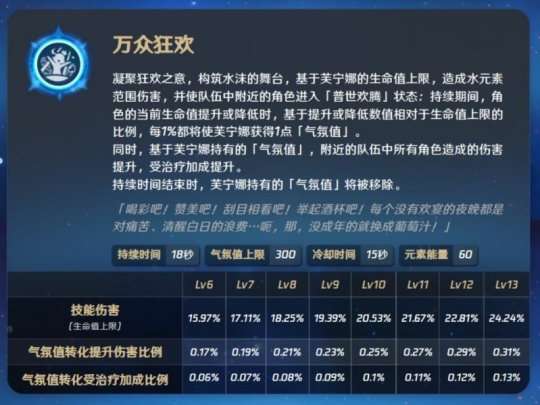 但是奶量核爆本身就要预留够一些空血条给负责核爆的那位来奶,需要快速回血或者掉血叠满气氛值和前面两位相比显得难以操作并且对于是否吃满有很大的不确定性。所以我平时打奶核上面两位是不可替代的,芙芙的加入只能算锦上添花。