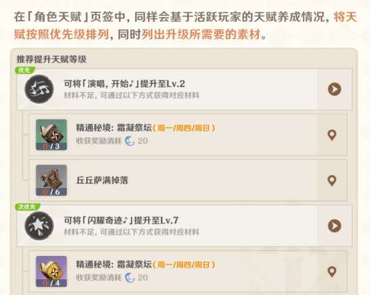 4.5版本新上线【提升指南】系统,一些玩家平时遇到角色带什么武器,带什么圣遗物和升级什么天赋等级的时候都会去网上搜索攻略,那么有了这个提升指南之后,大家不需要再去其他论坛即可看到出装推荐了。