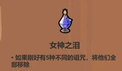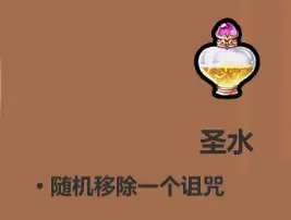 使用技巧:在被诅咒弄得不厌其烦的情况下,没有金币、护盾、药水的情况下使用。或是在6连诅咒宝箱房里,先开宝箱,然后喝药水,最后再拿奖励。