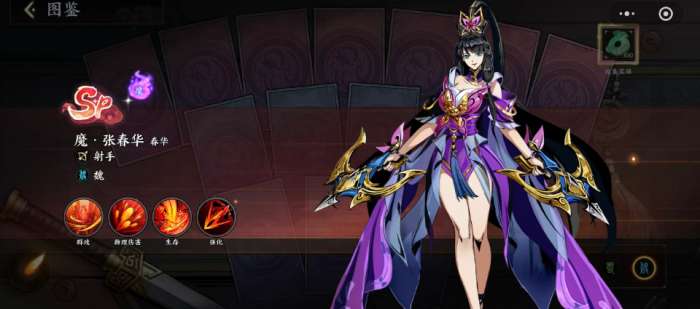 而在用张春华的时候,她同样是跟孙尚香放在一起来搭配整体核心的强度,她们俩角色都属于sp强度的输出角色,那么在这里她同样走射手路线的话,可以对空中类型的敌人造成更高的输出,而且每一次在撤退一段距离之后还可以造成320%的攻击,那么在此期间只要是靠近她的空中敌人都可以受到此类攻击的压制,后期有暴击概率以及伤害提升的话,只要触发自身的暴击,增加的攻击伤害达到15%,而在攻速上面同样也有20%的提升,以及20%的气血也可以让张春走射手路线,还可以同时保存自己的生存能力。