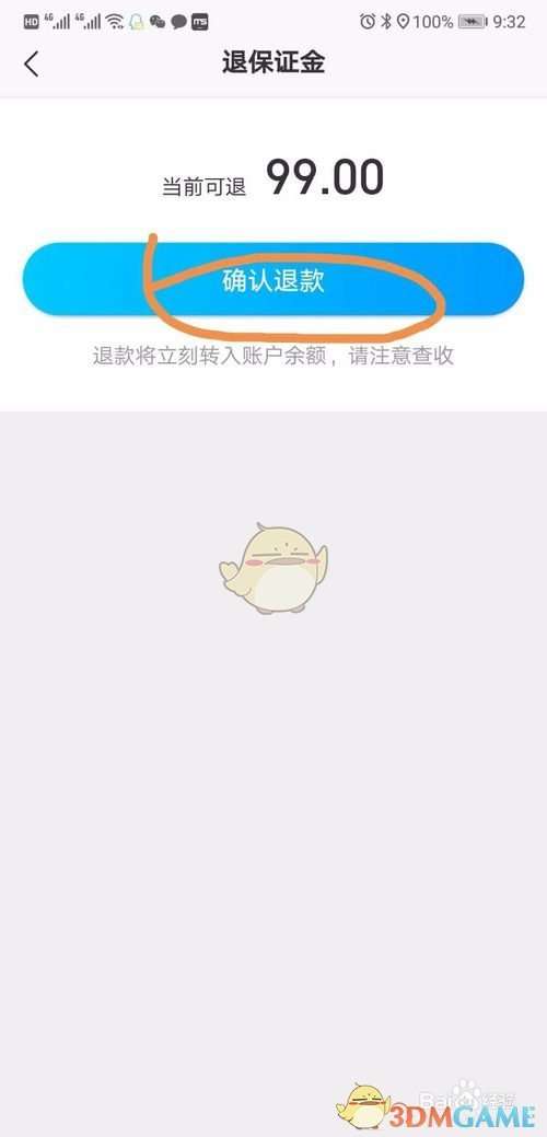 5、点击:确认退款”即可,保证金可前往余额进行提现。