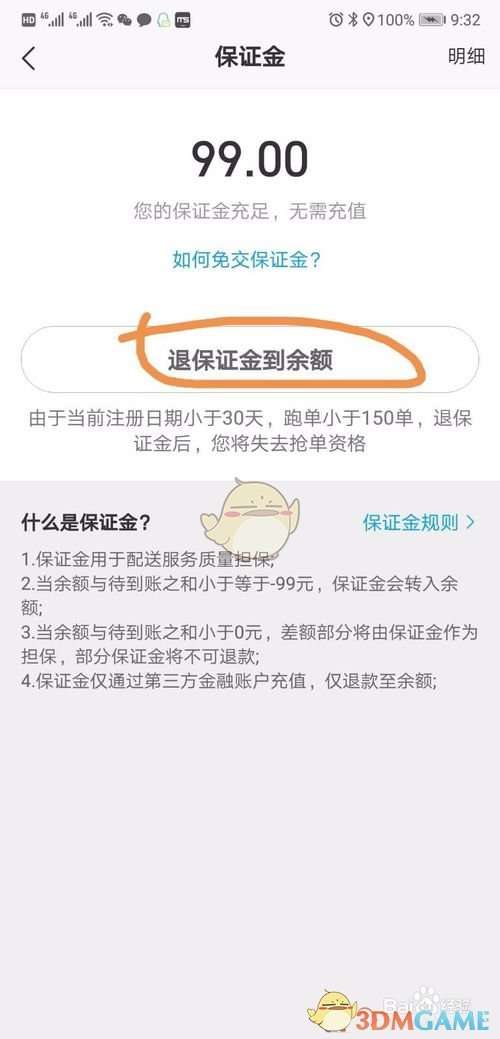 4、点击“退保证金到余额”