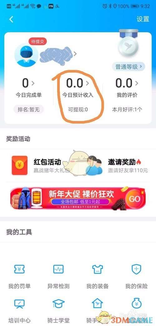 2、点击中间的“今日预计收入,可提现”