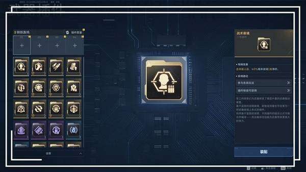 ·武器插件:是给武器叠加伤害属性,总共有四个插件,每个插件选择的方向不同,不同的插件提供不同的效果。