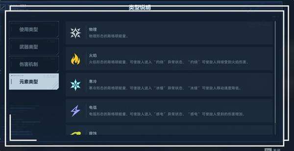 ·元素类型,所有元素类型能适配大多数环境,不用根据地图选择,萌新入门可以直接选择物理伤害。
