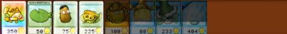 3、然后在第二行放两个阳光花盆和一个冰瓜香蒲。