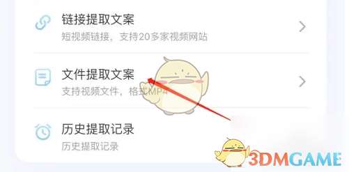 3、最后选择【文件提取文案】选项,点击进入即可设置。