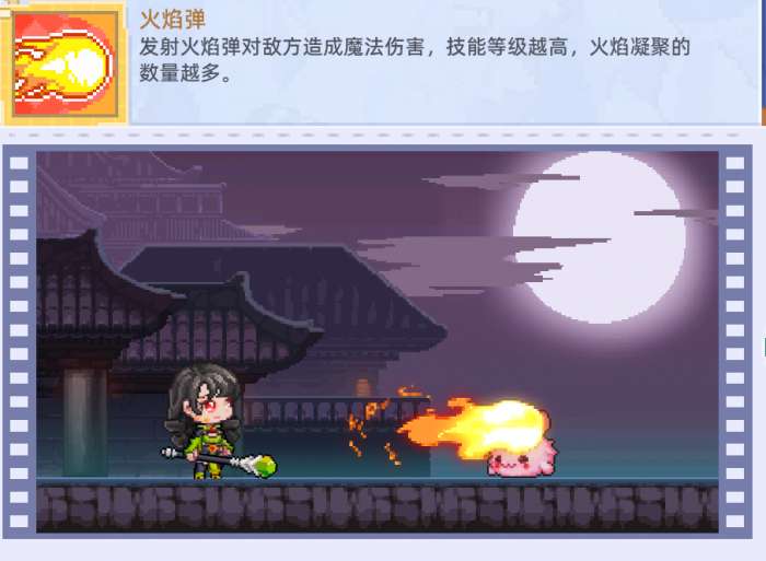 技能等级越高,火焰弹凝聚的数量越多,爆发越恐怖!